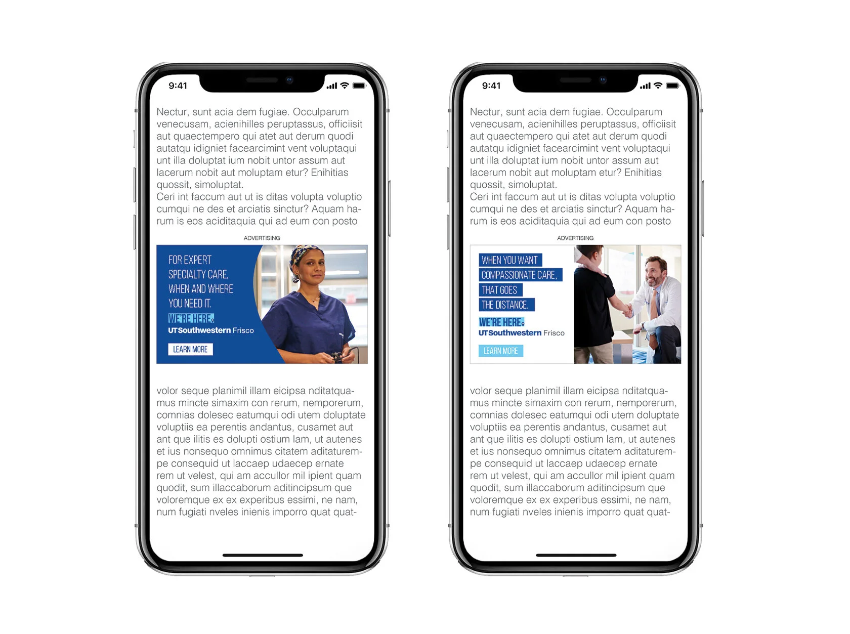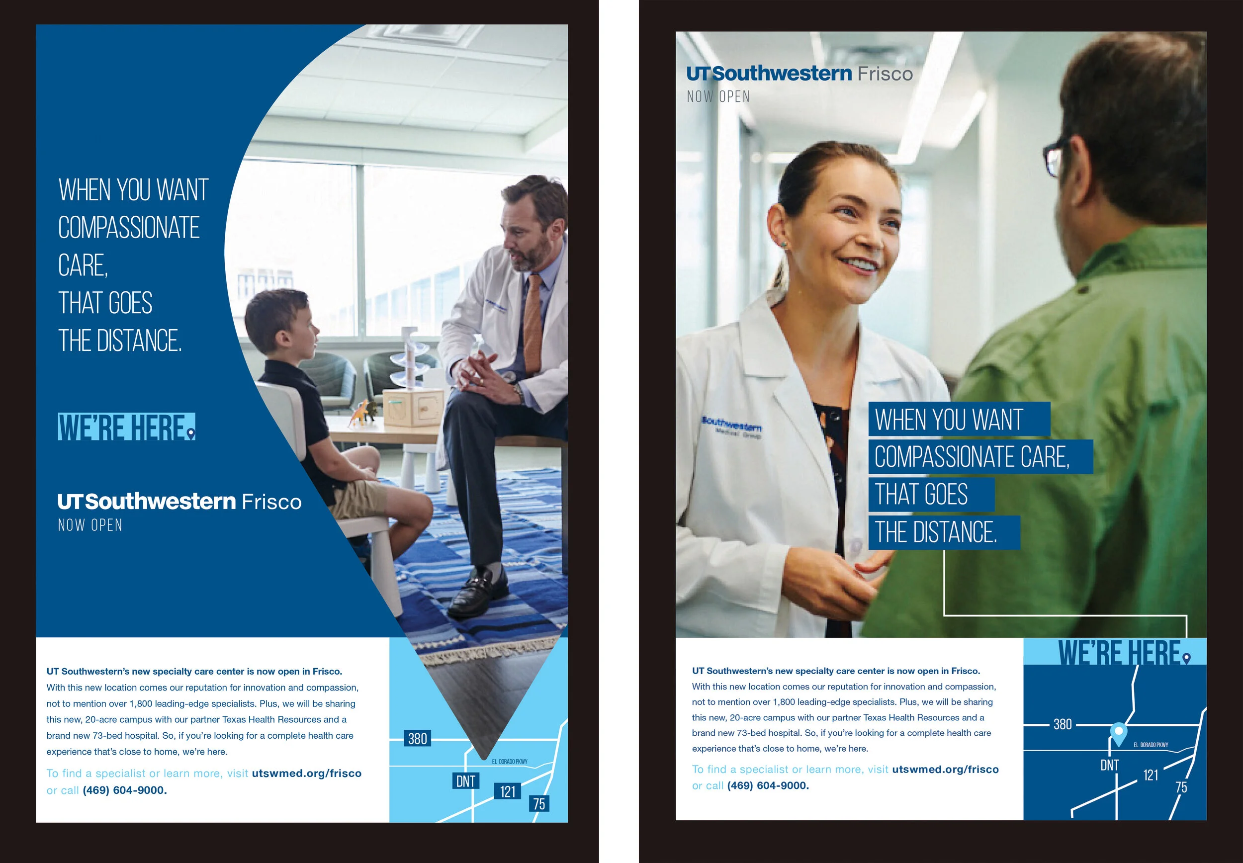 UT Southwestern wanted to solve two problems with this campaign; to let people know that they had amazing specialist physicians and that they’re located near to you. So the “We’re Here” campaign came to life to highlight all their services and convenient locations.